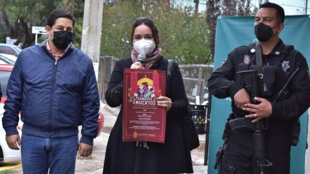 Zacatecas, Zac.-Este martes, el alcalde capitalino, Jorge Miranda Castro, en compañía de la secretaria de Desarrollo Económico y Turismo, Laila Villasuso Sabag anunció el regreso del Tianguis de Día de Muertos en la vialidad de los panteones Herrera y la Purísima, el cual se realizará del 27 de octubre al 3 de noviembre. Ulises Argüelles…