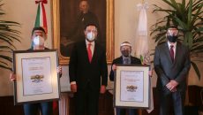 Zacatecas, Zac.- El Gobernador Alejandro Tello otorgó sendos reconocimientos a los ganadores del Premio Estatal del Deporte Zacatecas 2020, Fernando Iván Rodríguez Sosa, como deportista, y Gerardo de la Torre Rodríguez, como entrenador. Reunidos en el edificio de Palacio de Gobierno, bajo estrictos protocolos de prevención, el mandatario resaltó el esfuerzo, disciplina y empeño de estos…