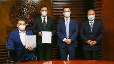 Zacatecas, Zac.- El Gobierno del Estado sometió a la consideración del Poder Legislativo la aplicación de sanciones y multas a las personas que ignoren las medidas de prevención y contención de la pandemia del Covid-19. El Gobernador Alejandro Tello y el Secretario General de Gobierno, Jehú Eduí Salas Dávila, entregaron esta mañana la iniciativa de…