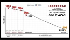 Zacatecas, Zac.- El Instituto de Seguridad y Servicios Sociales de los Trabajadores del Estado de Zacatecas (Issstezac), al cierre del mes en curso, tendrá una disminución en la nómina de sus trabajadores en 300 plazas, a través del retiro voluntario, lo que representa un esfuerzo para reducir el gasto en el Capítulo 1000. Al inicio…