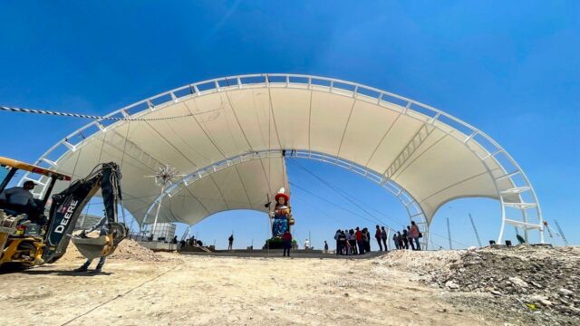 Fresnillo, Zac.- El Presidente Municipal, Saúl Monreal Ávila supervisó el proyecto del Santo Niño de Atocha gigante que se ubica en la comunidad Plateros, en la que actualmente se realiza la segunda etapa de la obra con la instalación de una velaria, el levantamiento de muros, la construcción de una plaza, del estacionamiento y la…