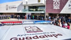 Zacatecas, Zac.- El alcalde de Guadalupe, Zacatecas, Julio César Chávez Padilla, entregó cinco patrullas a la Dirección de Seguridad Pública del municipio, cuya inversión supera los 3 millones 300 mil pesos y que refuerzan las acciones firmes en materia de seguridad pública. Después de rendir Honores a la Bandera en el patio de la Presidencia…