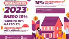 Zacatecas, Zac.- A partir de este lunes 02 de enero y hasta el próximo viernes 31 de marzo, se mantendrán vigentes atractivos descuentos para los contribuyentes cumplidos, de acuerdo a la Ley de Ingresos aprobada por la 64 Legislatura de Zacatecas. De esta forma durante enero, se aplicará un 15% de descuento; en febrero el…