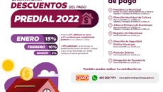 Zacatecas, Zac.- Como una oportunidad para que en el primer mes de 2022 los contribuyentes puedan realizar su pago del Impuesto Predial, el Ayuntamiento de Guadalupe aplicará descuentos y porcentajes adicionales a las y los guadalupenses por cumplimiento puntual y por cuidado del predio. De esta forma, durante todo enero se aplicará un 15% de…