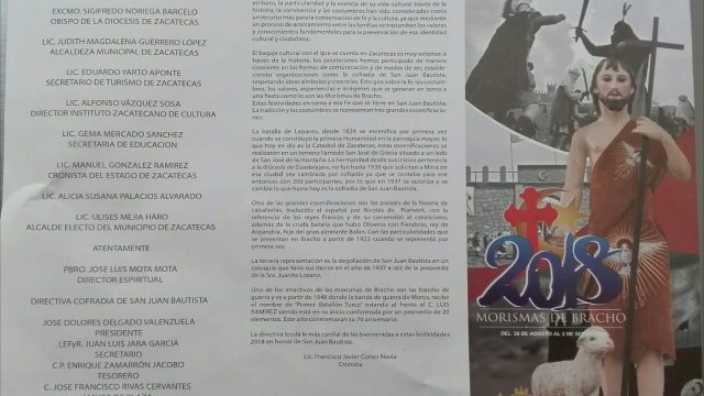 Zacatecas, Zac.- En presencia de la alcaldesa de la capital, Judit Guerrero López, fueron presentados el cartel oficial y el programa de las Morismas de Bracho 2018, que tendrán lugar del 28 de agosto al 2 de septiembre. En su mensaje, la presidente municipal de Zacatecas agradeció a la Cofradía de San Juan Bautista, organizadora…