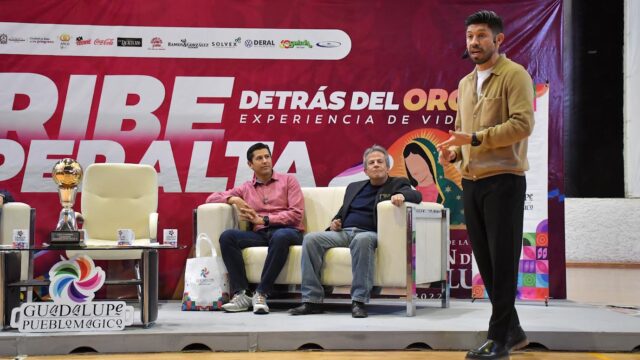 Zacatecas, Zac.- En el marco de la Feria Estatal de la Virgen de Guadalupe 2022, este día el exfutbolista Oribe Peralta llevó a cabo ante cientos de jóvenes su ponencia denominada ‘Detrás del Oro, Experiencia de Vida’ en el Auditorio de la Presidencia Municipal de Guadalupe, donde lo recibió el Presidente Municipal, Julio César Chávez…