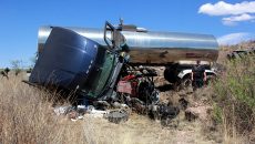 Zacatecas, Zac.- Tremenda volcadura se registró este viernes sobre la carretera libre a Aguascalientes, cuando un tráiler de doble semirremolque acondicionado para trasladar lácteos se salió de la cinta de asfalto y volcó. A pesar de que la unidad reporta pérdida casi en su totalidad, el conductor resultó ileso, afortunadamente. Los hechos se registraron…
