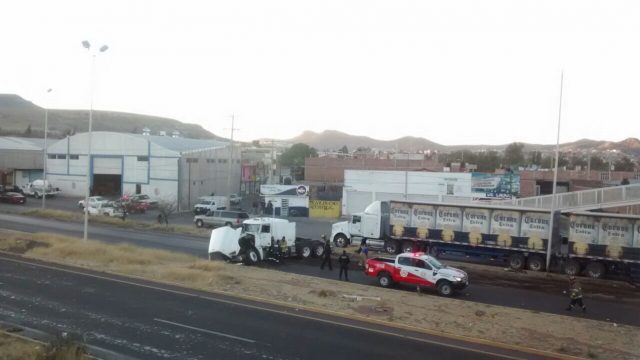 Zacatecas, Zac.-Sobre el libramiento de Tránsito Pesado, a la altura de la colonia Campesina, en Guadalupe, se suscitó un fuerte incidente carretero en el que se vio envuelto el conductor de un tractocamión. Por fortuna sólo hubo daños materiales, aunque estos son de consideración. El percance tuvo lugar alrededor de las 18 horas de este…