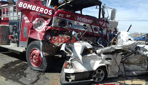 Guadalupe, Zac.- Un camión de bomberos de la Dirección de Protección Civil de Guadalupe, no pudo llegar a atender un reporte debido a que participó en un choque contra un automóvil que se atravesó a pesar de escuchar las sirenas. El accidente se registró en la carretera federal 45, kilómetro 3.5 en el Tramo Guadalupe-Trancoso.…