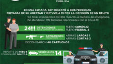 Guadalajara, Zac.- La Secretaría de Seguridad Pública (SSP) informó que durante una semana, las diferentes corporaciones que la conforman, detuvieron a 24 personas por la comisión de delitos del orden común y del fuero federal; al desmantelar un centro de empaque y distribución de droga aseguraron más de 2 mil 500 dosis y rescataron a seis…