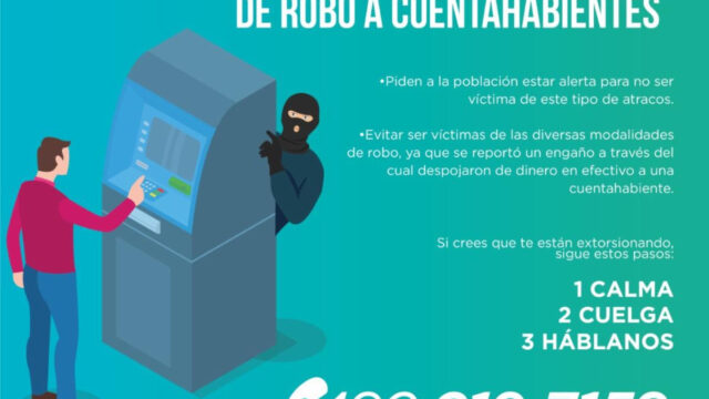 Zacatecas, Zac.- La Secretaría de Seguridad Pública de Zacatecas (SSP) alerta sobre modalidad de extorsión en la que, a través de una llamada, un sujeto asegura ser un ejecutivo de una institución bancaria y solicita generar una referencia de retiro en cajeros automáticos. Durante la llamada, el supuesto ejecutivo dice a la víctima que se generó…
