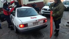 Zacatecas, Zac.- Una presunta falla mecánica fue el motivo por el cual un taxista perdió el control de su vehículo y se fue por la pendiente de la calle Socavón del Agua, del centro de la ciudad, para terminar estrellándose contra una vivienda antigua. El taxista resultó lesionado, al parecer se fracturó una pierna, por…