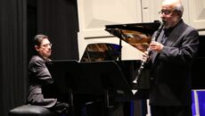 Zacatecas, Zac.- Con un repertorio conformado por piezas como la “Sonata”, de Francis Poulenc, “3 Preludios”, de George Gershwin, el “Danzón no 5”, de Arturo Márquez y “Zarabandeo”, de su misma autoría, pieza dedicada al clarinetista zacatecano Luis Humberto Ramos, quien ideó esta presentación, se llevó a cabo el concierto “Clarineteando”, en el Teatro Fernando…