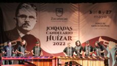Jerez, Zac.- Teniendo como marco el Teatro Hinojosa, del municipio de Jerez, se llevó a cabo el acto inaugural de las Jornadas candelario Huizar 2022, a través del Concierto de Música tradicional para Marimba, a cargo del Ensamble de Percusiones de la Universidad Autónoma de Zacatecas (UAZ), bajo la dirección de Manuel Eduardo Melgarejo Betancourt.…