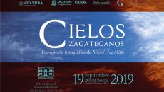 Zacatecas, Zac.- Este jueves 19 de septiembre se llevará acabo la inauguración Cielos zacatecanos, exposición del fotógrafo zacatecano Miguel Angel Cid, como parte de los festejos del XXIV aniversario del Museo Zacatecano. Dicha muestra estará conformada por un conjunto de fotografías, en la que el autor plasma, a través de su lente, el cielo zacatecano.…