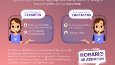 Zacatecas, Zac.- El Gobierno de Zacatecas, a través de la Secretaría de las Mujeres, informa que los Centros de Atención a Mujeres Víctimas de Violencia en los municipios de Zacatecas y Fresnillo continuarán su operación durante el periodo vacacional, con el objetivo de brindar atención integral, especializada y oportuna a quienes lo necesiten. Como parte…