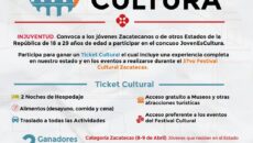 Zacatecas, Zac.- El Instituto de la Juventud del Estado de Zacatecas (Injuventud) lanzó el concurso denominado “Joven es Cultura”, que convocó a personas de los 18 a los 29 años de edad a participar por un ticket y poder tener una experiencia completa en el estado y en los eventos que se realizan dentro del Festival…