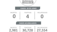 Zacatecas, Zac.- La Secretaría de Salud de Zacatecas (SSZ) informó que, este viernes, no se registraron defunciones, ni pacientes recuperados de COVID-19; sólo se reportaron cuatro nuevos contagios. Los cuatro casos corresponden a personas del sexo masculino, dos son originarios de Zacatecas, uno tiene 49 años y fue detectado por la SSZ; el otro tiene…