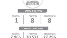 Este martes, Zacatecas alcanzó los 30 mil 571 casos acumulados del Coronavirus (COVID-19), con el reporte, en las últimas 24 horas, de ocho nuevos contagios. Además, la Secretaría de Salud estatal dio a conocer que, por este virus, falleció una persona y se recuperaron ocho más. Entre los positivos hay cinco mujeres y tres hombres.…