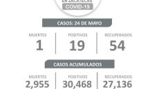 Zacatecas, Zac.- La Secretaría de Salud de Zacatecas (SSZ) reportó este lunes 19 nuevos contagios de Covid-19, 54 recuperados y una defunción, con lo que se llega a un total de 30 mil 468 contagios, de los cuales, 27 mil 136 se han recuperado y 2 mil 955 lamentablemente han perdido la vida. De los…