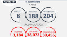 Zacatecas, Zac.- Por primera vez en esta semana, repuntan los contagios de COVID-19 en Zacatecas, con el registro de 188 nuevos este miércoles. En tanto, el número de decesos se mantiene en la media de los últimos días, con ocho reportados en las últimas 24 horas por la Secretaría de Salud estatal. Con los nuevos…