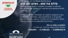 Zacatecas, Zac.- La Secretaría de Seguridad Pública de Zacatecas (SSP) alerta sobre números telefónicos utilizados como línea extorsiva, ya que a través de llamadas un sujeto asegura a sus probables víctimas que pertenece a un grupo delincuencial y que a cambio de no hacerle daño deben realizar un depósito bancario. Por medio de una denuncia…