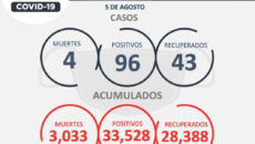 Zacatecas, Zac.-Este jueves, la Secretaría de Salud de Zacatecas (SSZ) registró cuatro fallecimientos y 96 nuevos contagios de COVID-19, así como 43 pacientes recuperados. Gilberto Breña Cantú, titular de la SSZ, informó que, de las personas contagiadas, son 41 mujeres y 55 hombres. Son 20 pacientes de 1 a 20 años, entre ellos un niño…