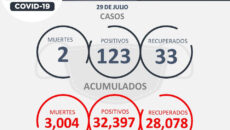 Zacatecas, Zac.-Dos muertes por complicaciones de COVID-19, 123 nuevos contagios y 33 personas recuperadas es el reporte que la Secretaría de Salud de Zacatecas (SSZ) presenta para este jueves en la entidad. Entre los nuevos pacientes positivos a SARS-CoV2 hay 65 mujeres y 58 hombres. 38 son originarios de Zacatecas, de Guadalupe 35, de Fresnillo…