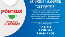 Zacatecas, Zac.- La Secretaría de Seguridad Pública de Zacatecas (SSP) alerta sobre la modalidad de extorsión en la que un sujeto asegura ser el Secretario de Seguridad Pública y llama para solicitar información y datos personales del propietario de la línea telefónica. A través de una denuncia ciudadana, recibida en la Línea de Contacto con el…