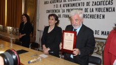 Zacatecas, Zac.-“La prevención de la violencia escolar” es el título de la conferencia que dictó el día de hoy el doctor en Sociología de la Universidad Sorbonne de París, Francia, Franz Vanderschueren, en el foyer del Teatro Fernando Calderón. A nombre el rector Antonio Guzmán Fernández, el coordinador del Área de Ciencias Sociales y Administrativas,…