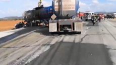Zacatecas.- Un accidente entre dos pipas ocurrió la tarde de este martes sobre el tramo carretero Osiris- Vetagrande, por fortuna no se registran personas lesionadas, solo cuantiosos daños materiales. Tras el impacto lateral de uno de los tractocamiones que jalaba dos carros tanque, comenzó a incendiarse, ni la rápida intervención de los bomberos, impidió que…