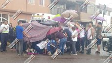 Zacatecas, Zac.- Sobre la Hombres Ilustres y Lázaro Cárdenas, dos jóvenes que viajaban en una motocicleta fueron atropellados por una unidad, lo grave es que la ambulancia tardó en llegar hasta más de 3p minutos. Bajo una pertinaz lluvia se registró el hecho en el que la sociedad Fresnillense se unió para cubrir a los…