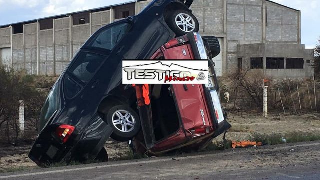 Zacatecas, Zac.- Milagrosamente sin lesionados resultó un aparatoso accidente automovilístico reportado este lunes por la tarde, cuando un vehículo jalaba a otro por medio de una correas y una de ellas se enredó en las llantas. Los hechos se verificaron en el tramo de carretera que va de Fresnillo a Río Grande, y se produjo…