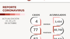 Zacatecas, Zac.- Un total de 87 recuperados, 77 nuevos casos positivos y cuatro defunciones es el comportamiento que mostró la pandemia por COVID-19 en Zacatecas, durante los últimos tres días, según el informe de las autoridades de salud del estado. El total de mujeres que superaron la enfermedad causada por el SARS-CoV-2 es de 50,…