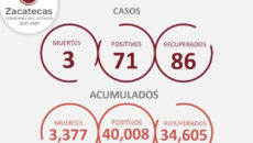 Cierra Zacatecas la semana con 34 mil 605 recuperados del COVID-19