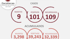 Hay 101 nuevos casos de COVID-19 en Zacatecas; 9 decesos y 109 recuperados