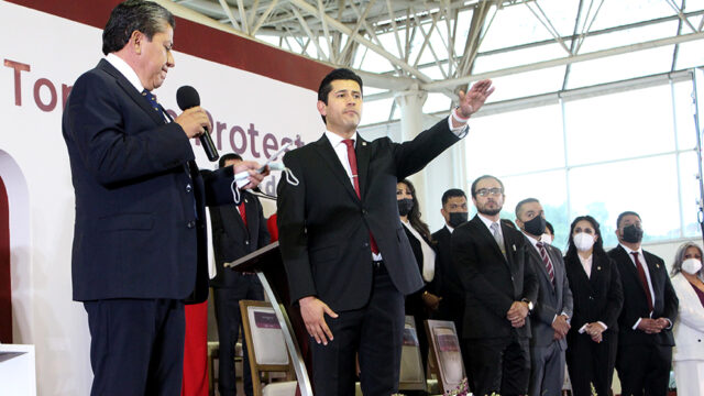 Fotos: Alejandra B. Camarillo Zacatecas, Zac.-En el marco de la Sesión Solemne de Cabildo del Ayuntamiento de Guadalupe 2021-2024, llevada a cabo este miércoles 15 de septiembre, el gobernador del estado de Zacatecas David Monreal Ávila, tomó la protesta a Julio César Chávez Padilla como Presidente Municipal, el primer reelecto en la historia de este…
